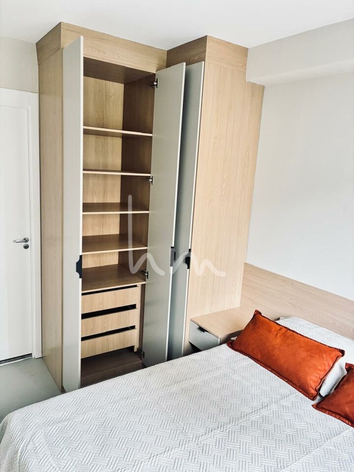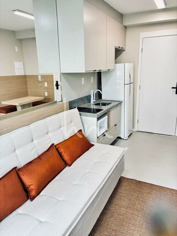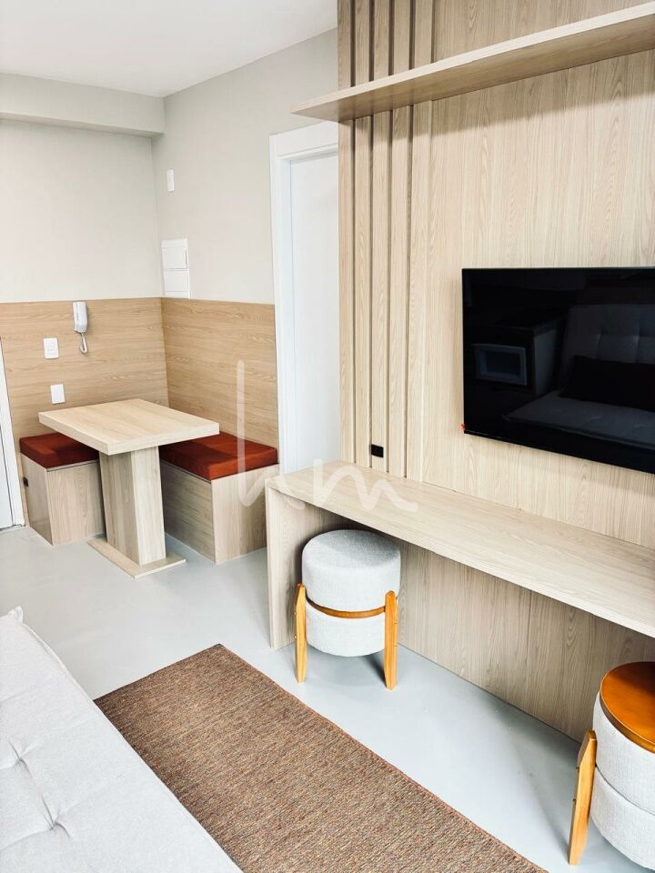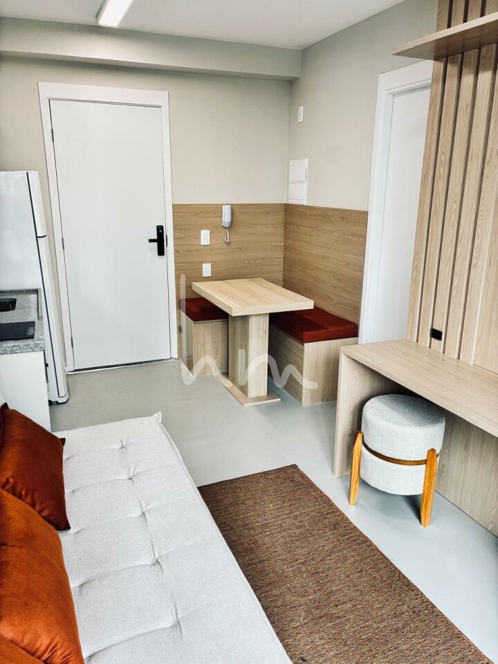 Apartamento 1 dormitório moderno e totalmente mobiliado, móveis planejados em todos os ambientes, ar-condicionado e varanda na sala. Andar alto com vista livre, ideal para quem busca conforto e praticidade no dia a dia. Já equipado com cooktop, geladeira, micro-ondas e internet instalada.