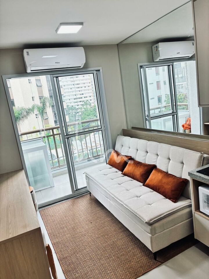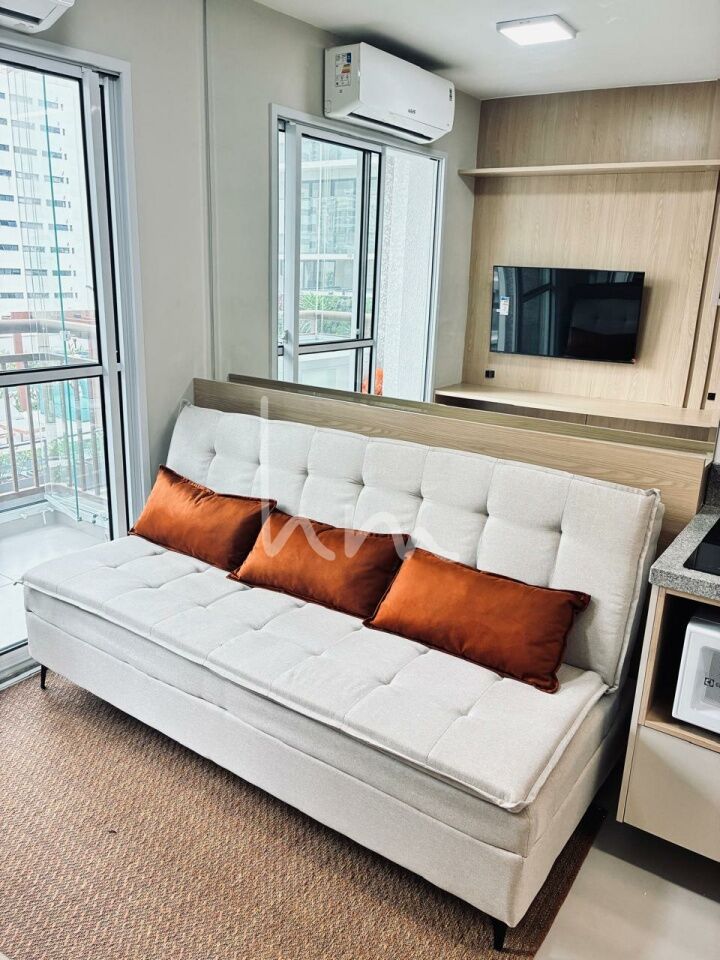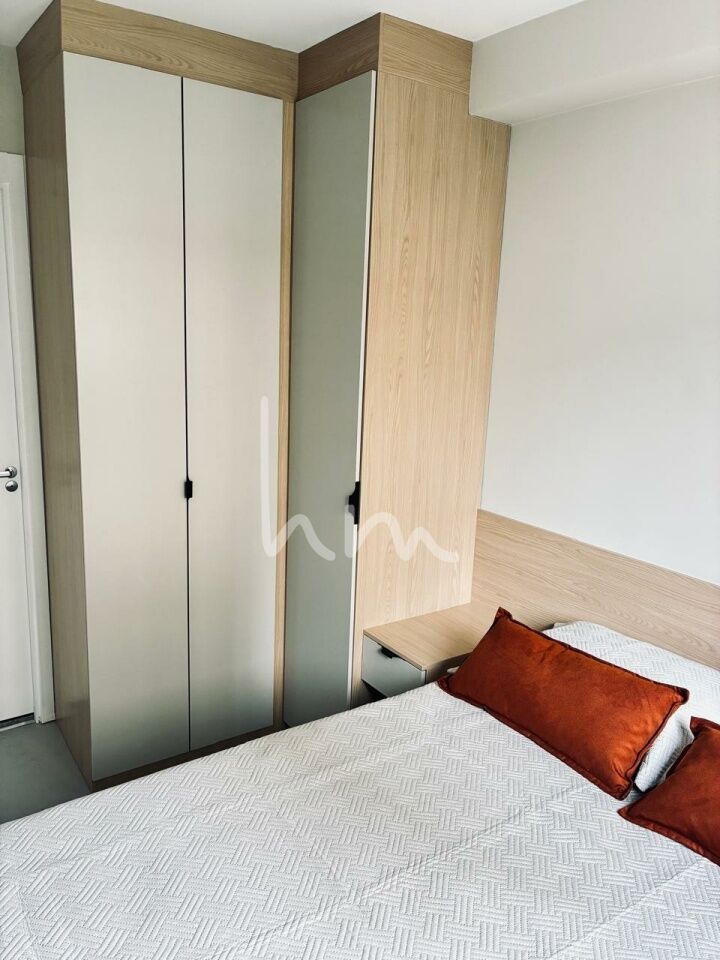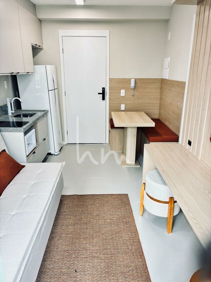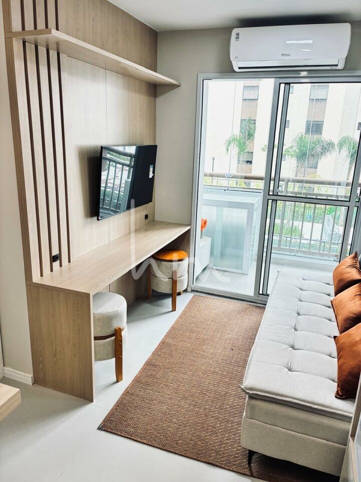 Apartamento 1 dormitório moderno e totalmente mobiliado, móveis planejados em todos os ambientes, ar-condicionado e varanda na sala. Andar alto com vista livre, ideal para quem busca conforto e praticidade no dia a dia. Já equipado com cooktop, geladeira, micro-ondas e internet instalada.
