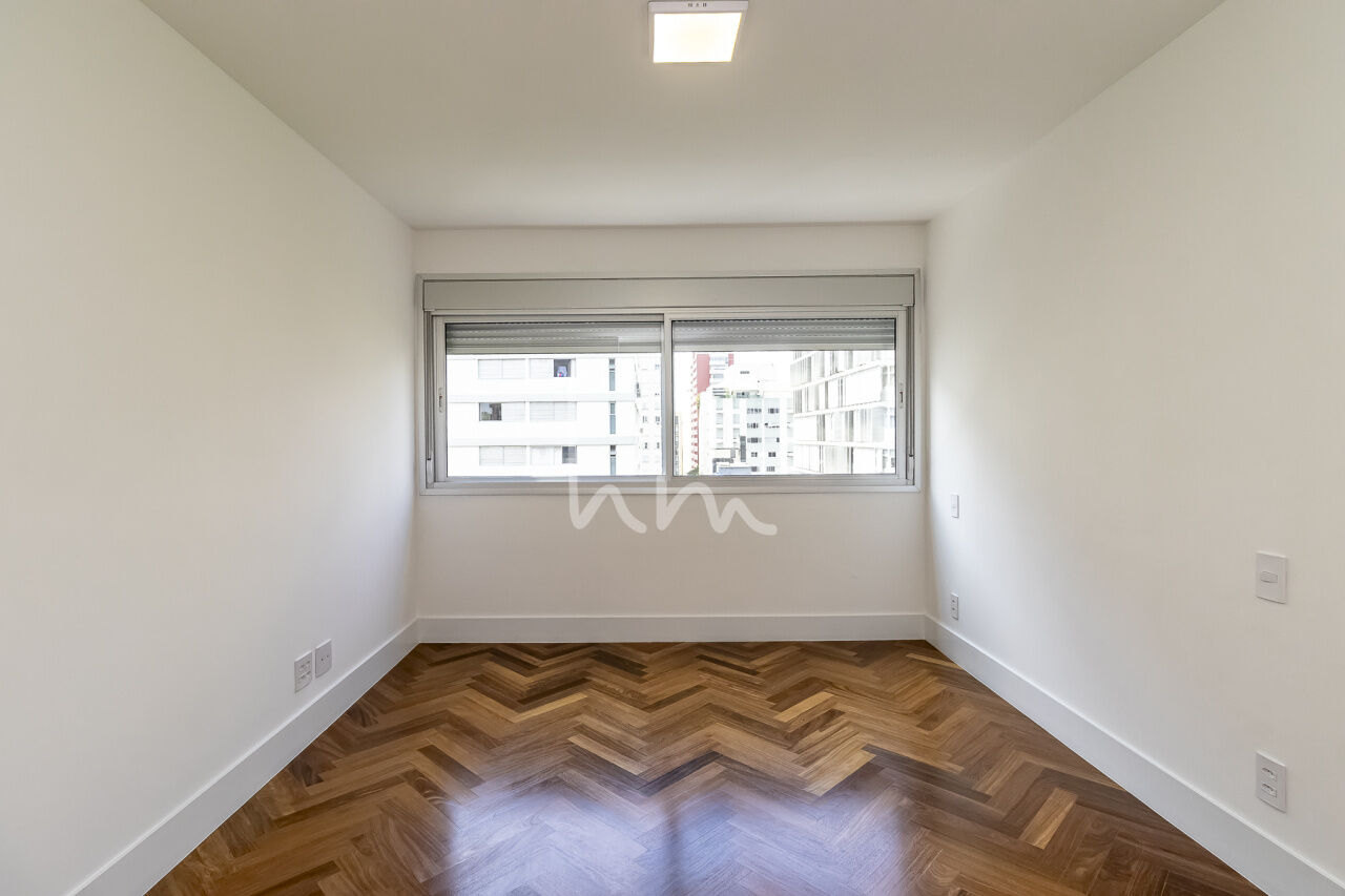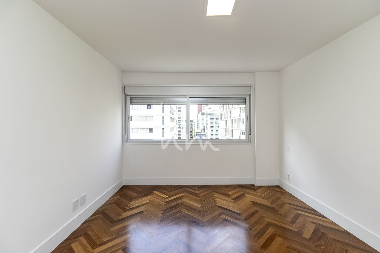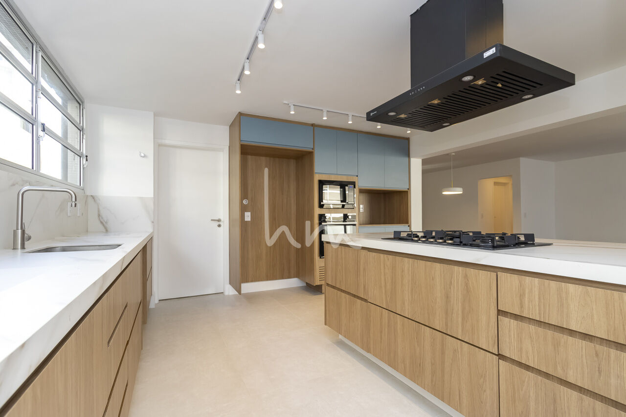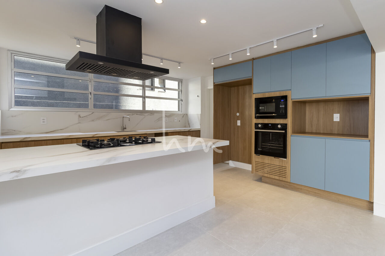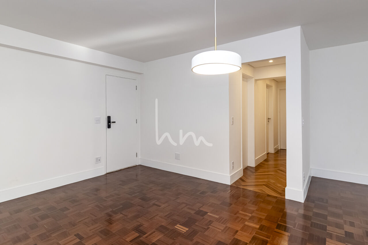 A planta quadrada desse apto facilitou a escolha de layout pela Arquiteta Cecília Hayashi (Ceci Yakabi Arquitetura e Reformas), que por acaso foi também a nossa parceira no outro apto que lá reformamos. Na área íntima conseguimos ter um banheiro para cada dormitório (duas suítes e um 3 dormitório com banheiro social). No espaço social temos uma ampla sala com janelão piso teto e vista para o belíssimo edifício Solar do Conde, um dos ícones da arquitetura modernista em Higienópolis. A sala tem um lindo piso em taco mini Parquet, original, que foi cuidadosamente restaurado. A cozinha se integra com a sala de maneira harmoniosa, criando um agradável espaço de convívio social. O Edifício Place L Etoile é um projeto de 1974 do Arquiteto João Kon, e está muito bem localizado na rua Pará, no trecho entre Bahia e Angélica, quase em frente à padaria Le Bleu.