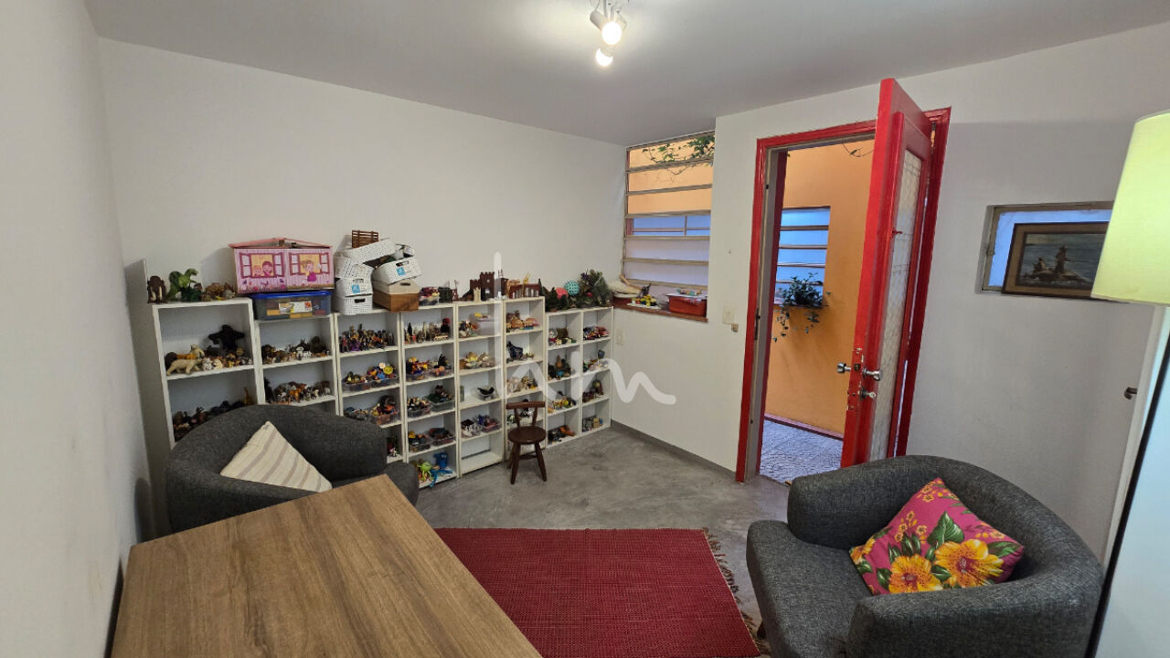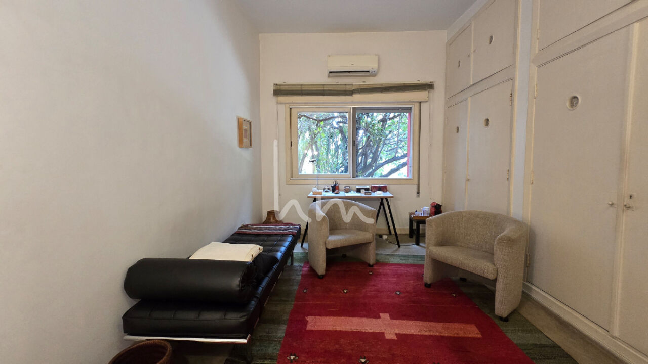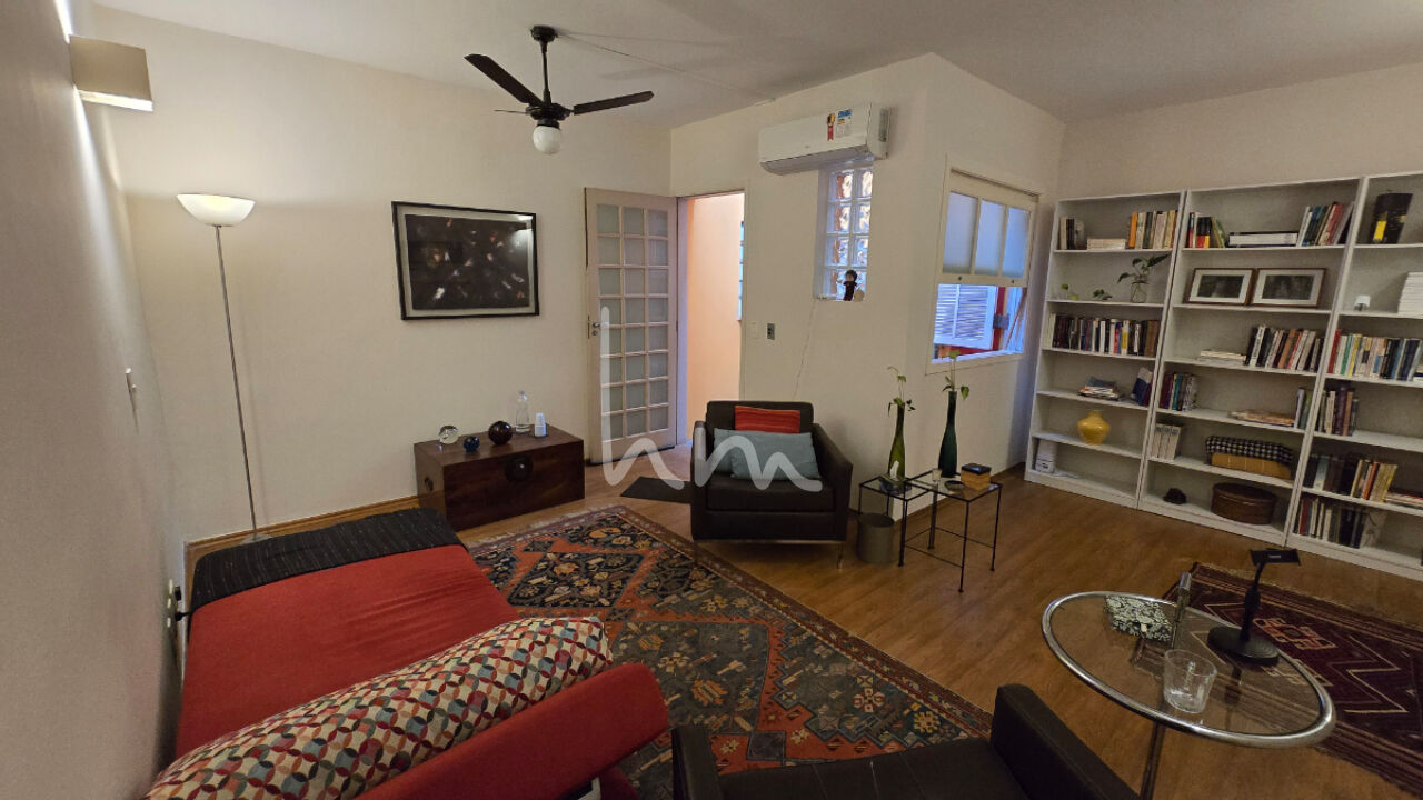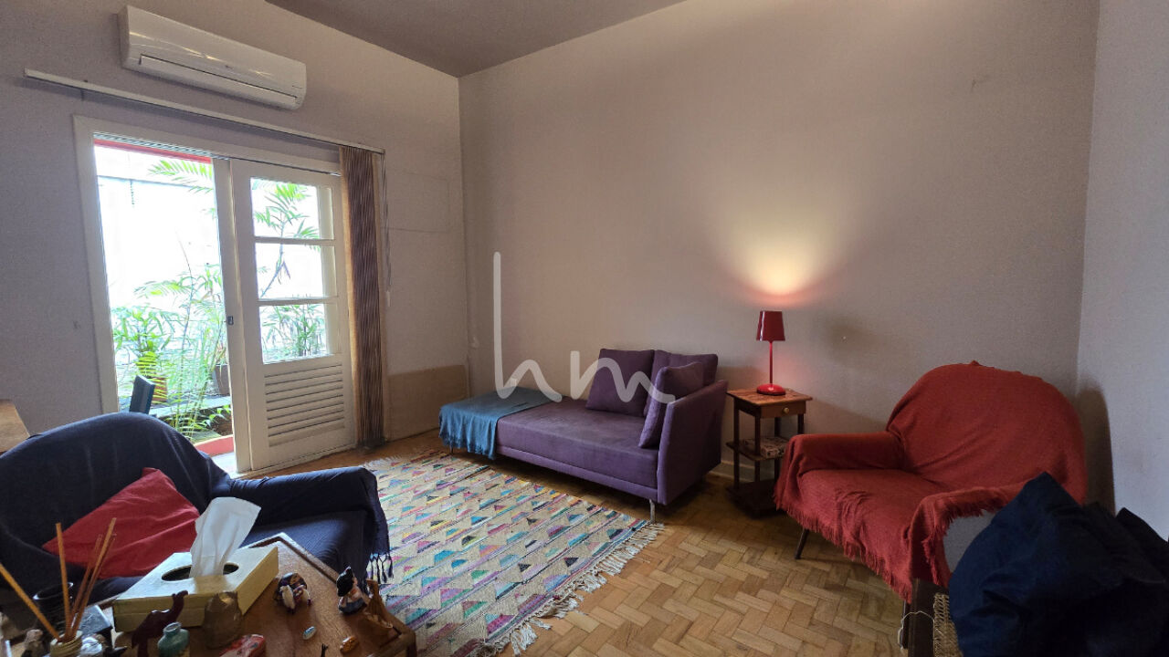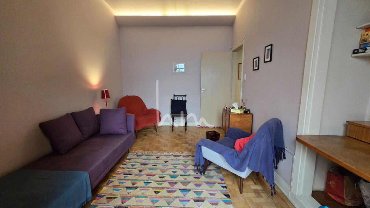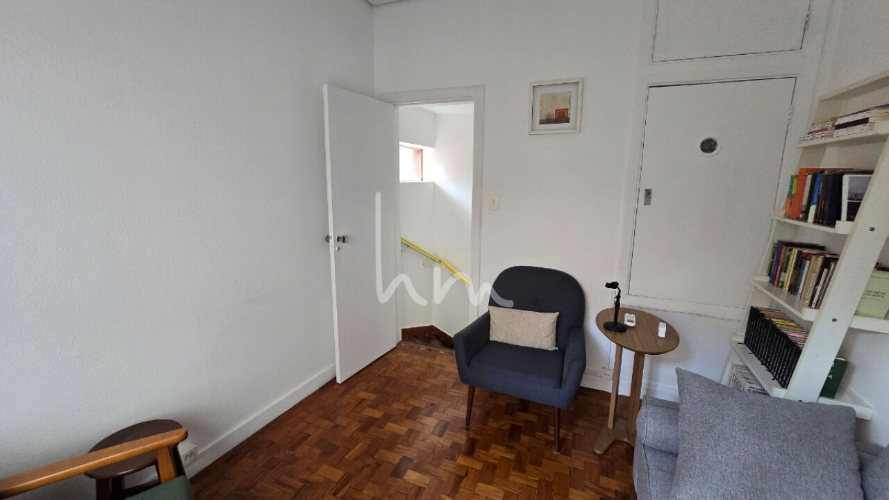 O living original é generoso e iluminado, emoldurado pelos icônicos janelões de ferro que remetem à arquitetura de época. Ao fundo, sala de jantar espaçosa, lavabo social e uma cozinha com planta excelente pronta para ser integrada e modernizada com liberdade total de projeto.