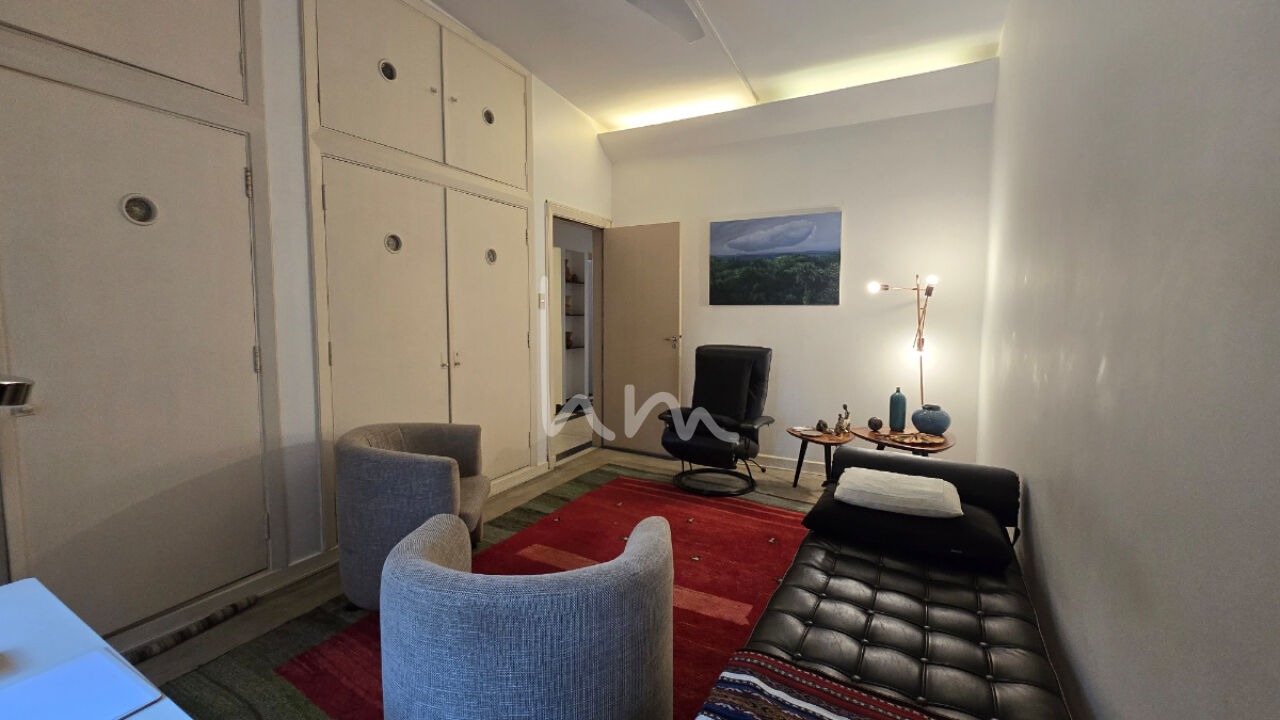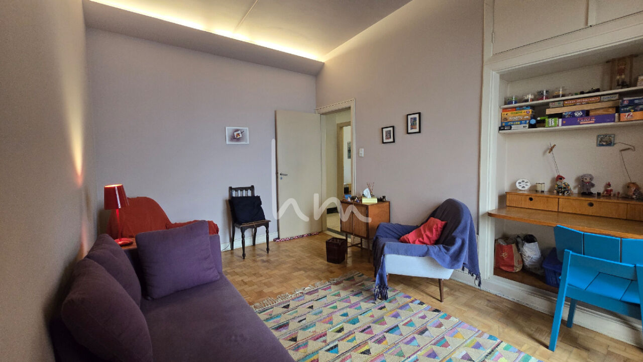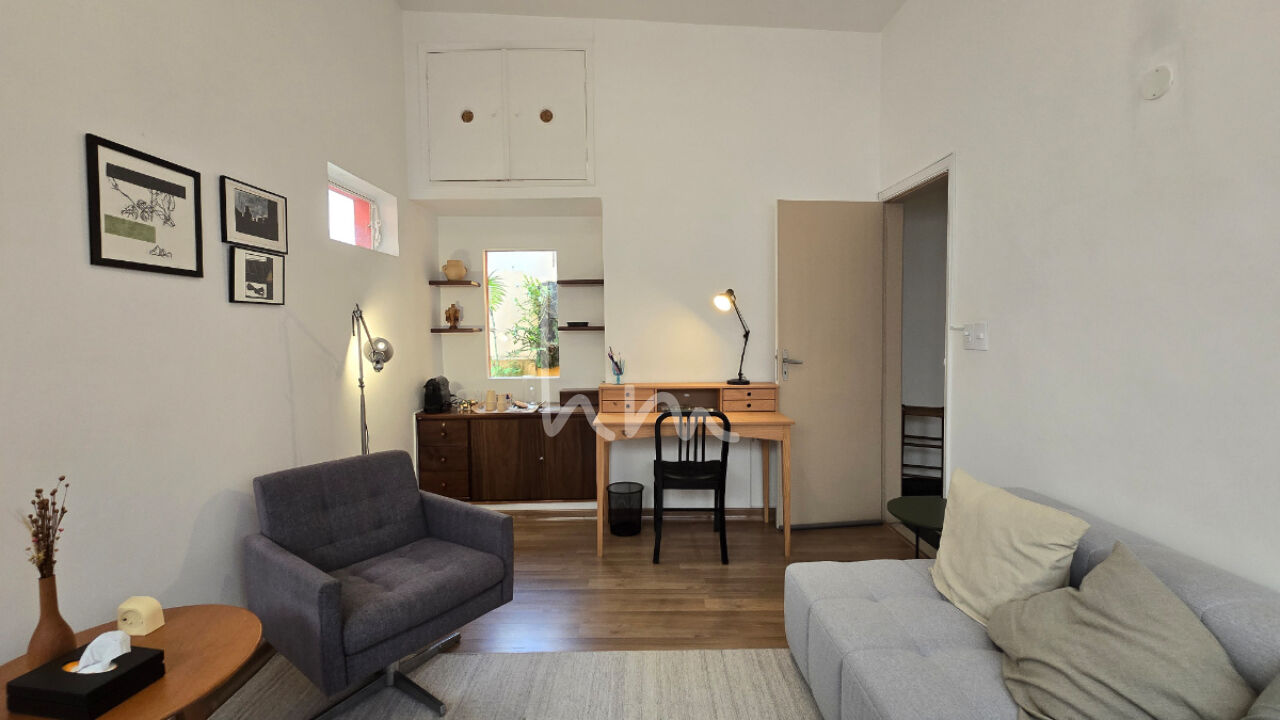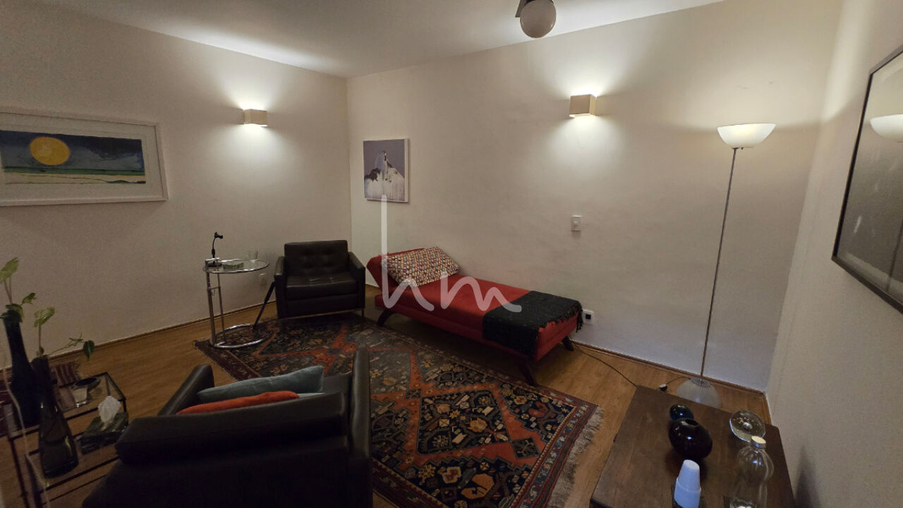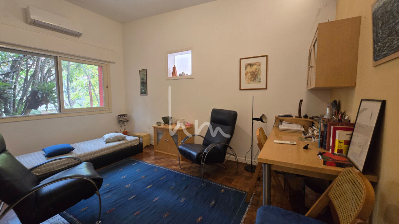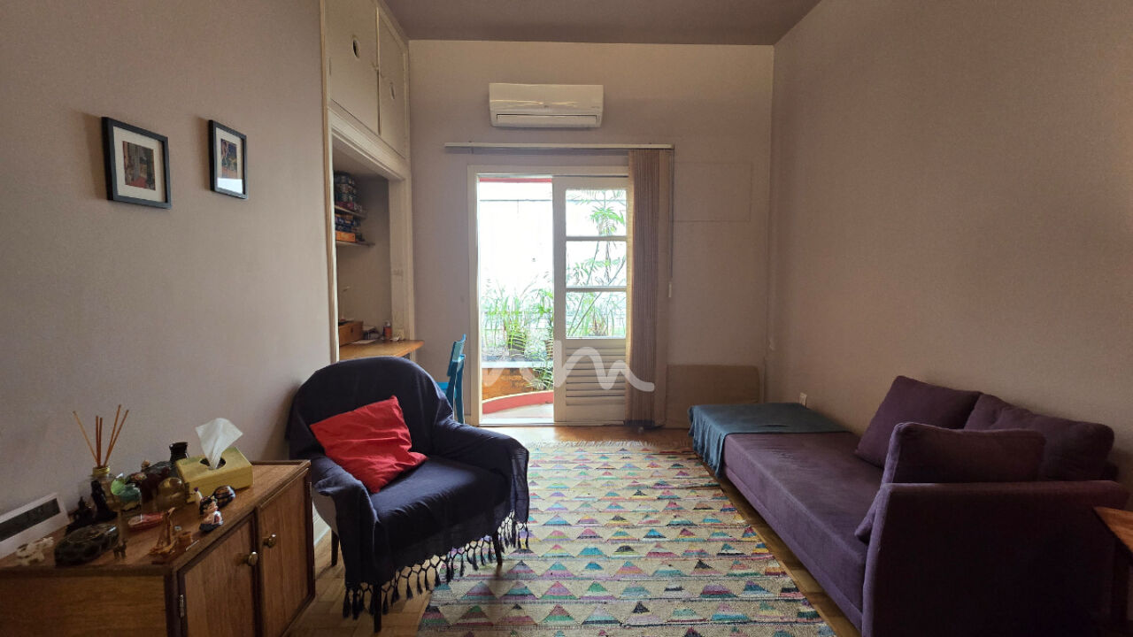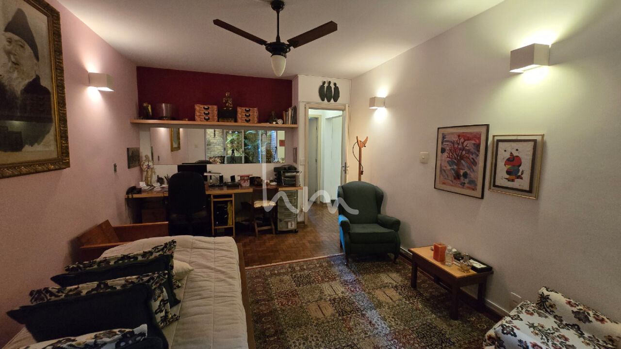 O living original é generoso e iluminado, emoldurado pelos icônicos janelões de ferro que remetem à arquitetura de época. Ao fundo, sala de jantar espaçosa, lavabo social e uma cozinha com planta excelente pronta para ser integrada e modernizada com liberdade total de projeto.