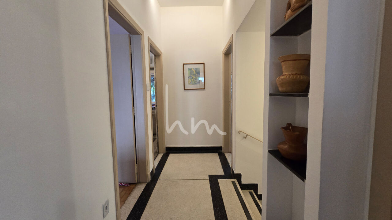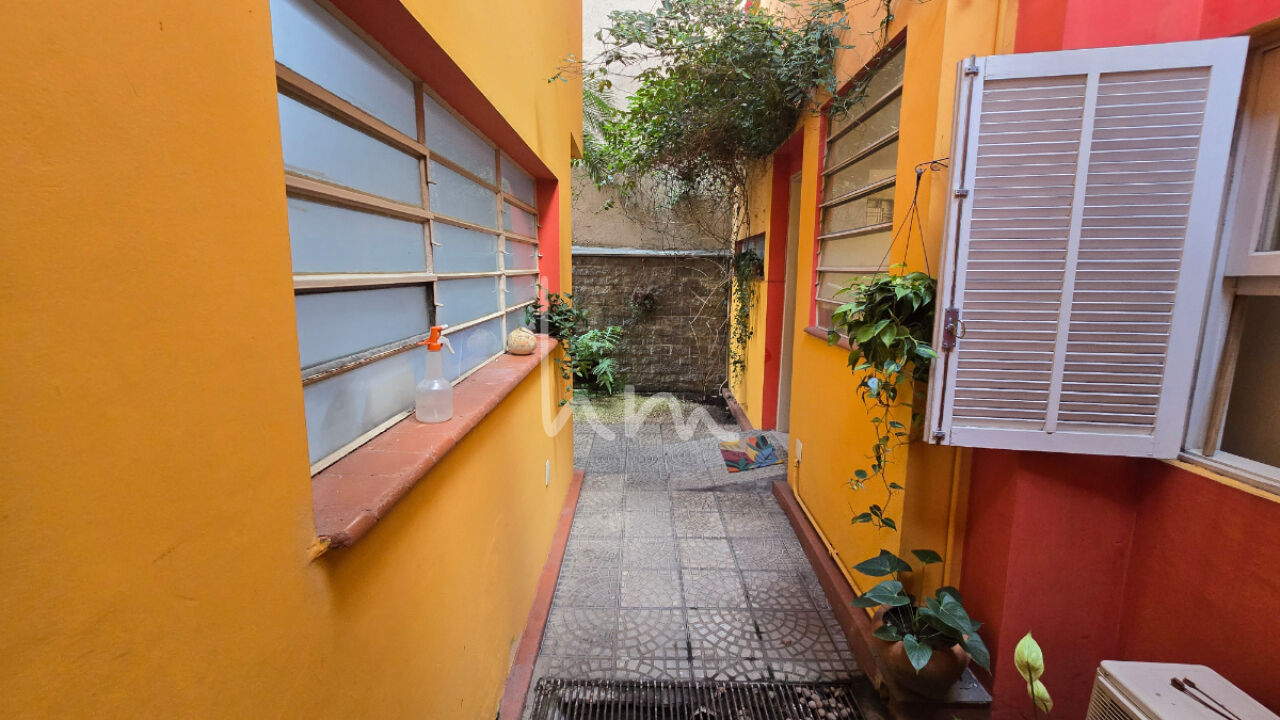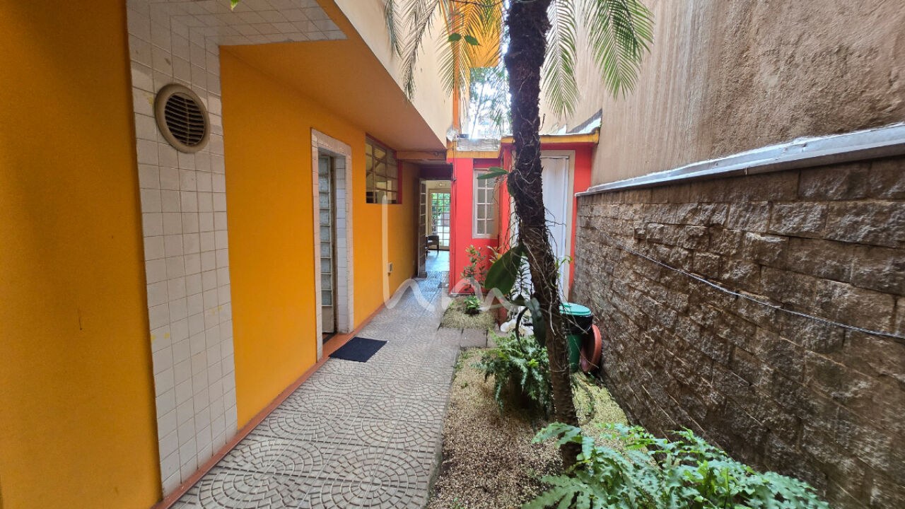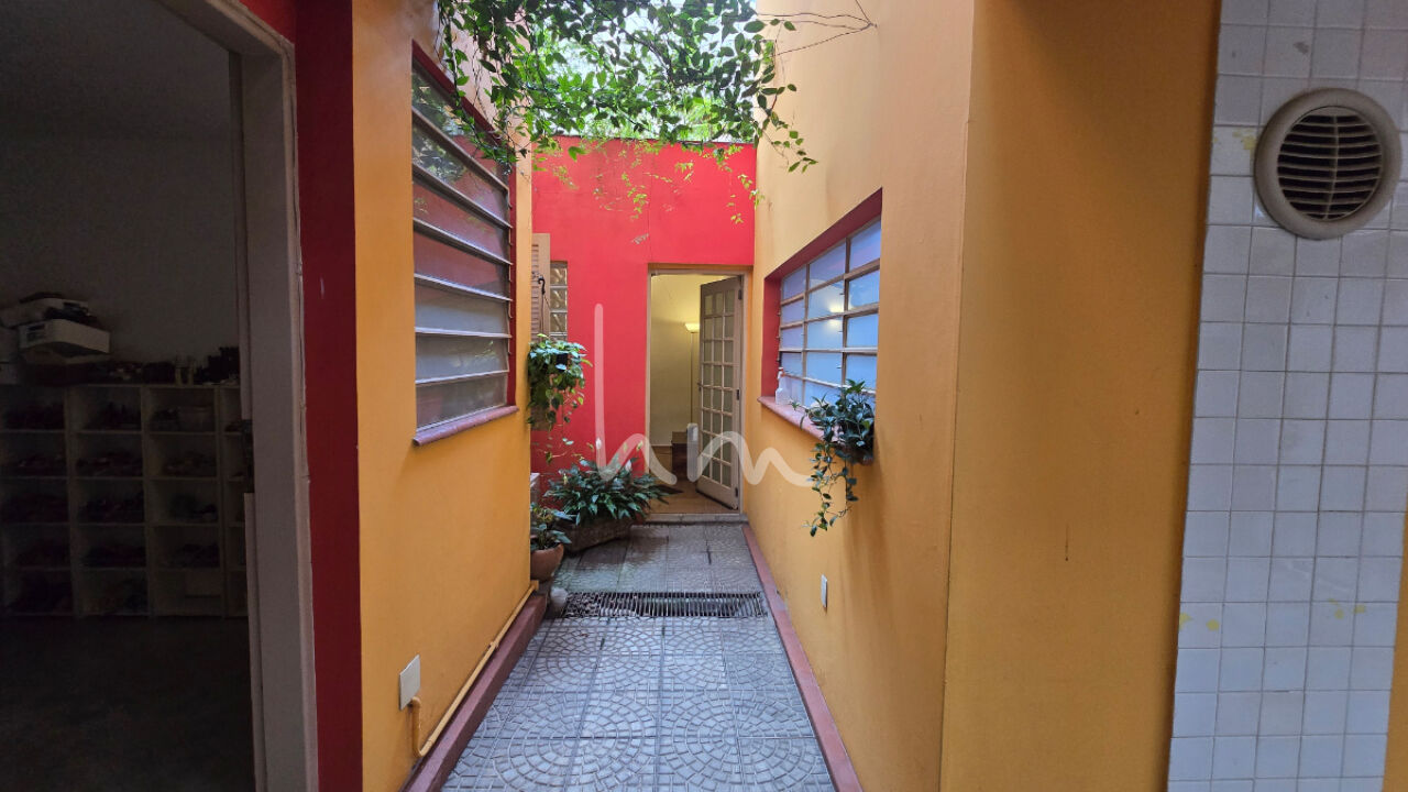 Corredor lateral com acesso independente à edícula e a uma sala adicional de generosas proporções construída onde antes era o quintal. Consultório master, ateliê, área gourmet, home office de alto padrão: o espaço é seu, o projeto também.