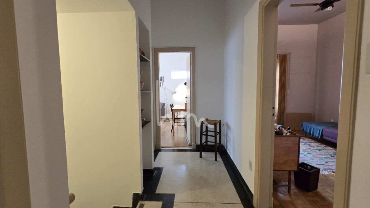 Dois dormitórios frontais amplos com dimensões idênticas, uma sala aos fundos com balcão privativo e vista livre, além de área adaptável onde originalmente ficava um generoso banheiro espaço perfeito para criação de suítes sob medida.