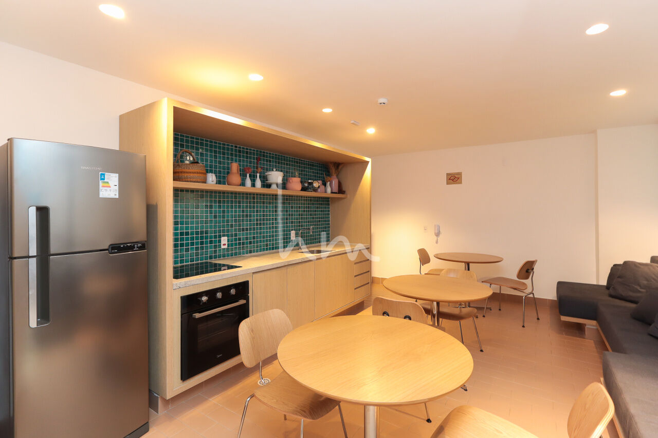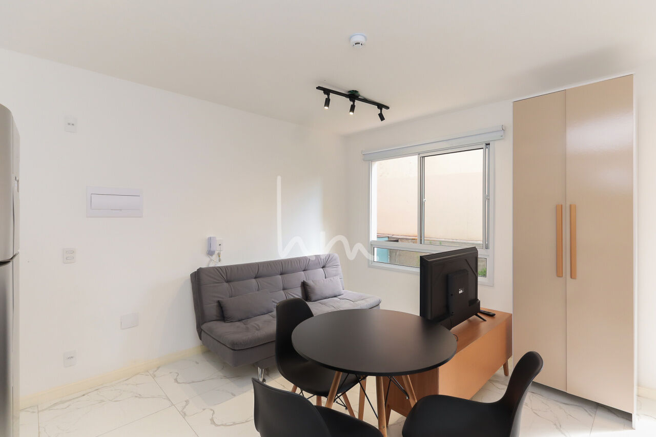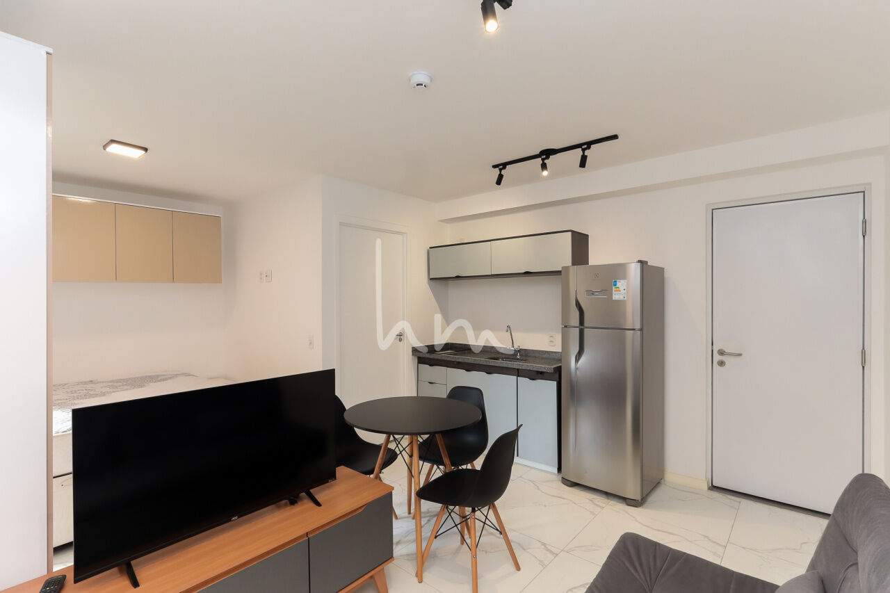 O apartamento é um Studio novo, totalmente mobiliado e muito bem conservado. A planta integra sala, dormitório e cozinha de maneira inteligente, otimizando o espaço e garantindo praticidade. A marcenaria é funcional, os móveis estão em excelente estado e os acabamentos seguem padrão contemporâneo.