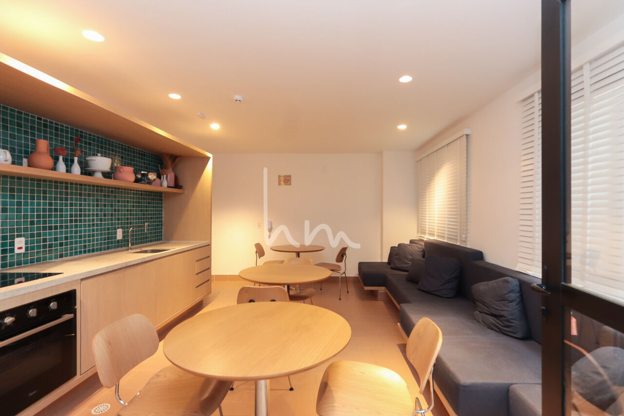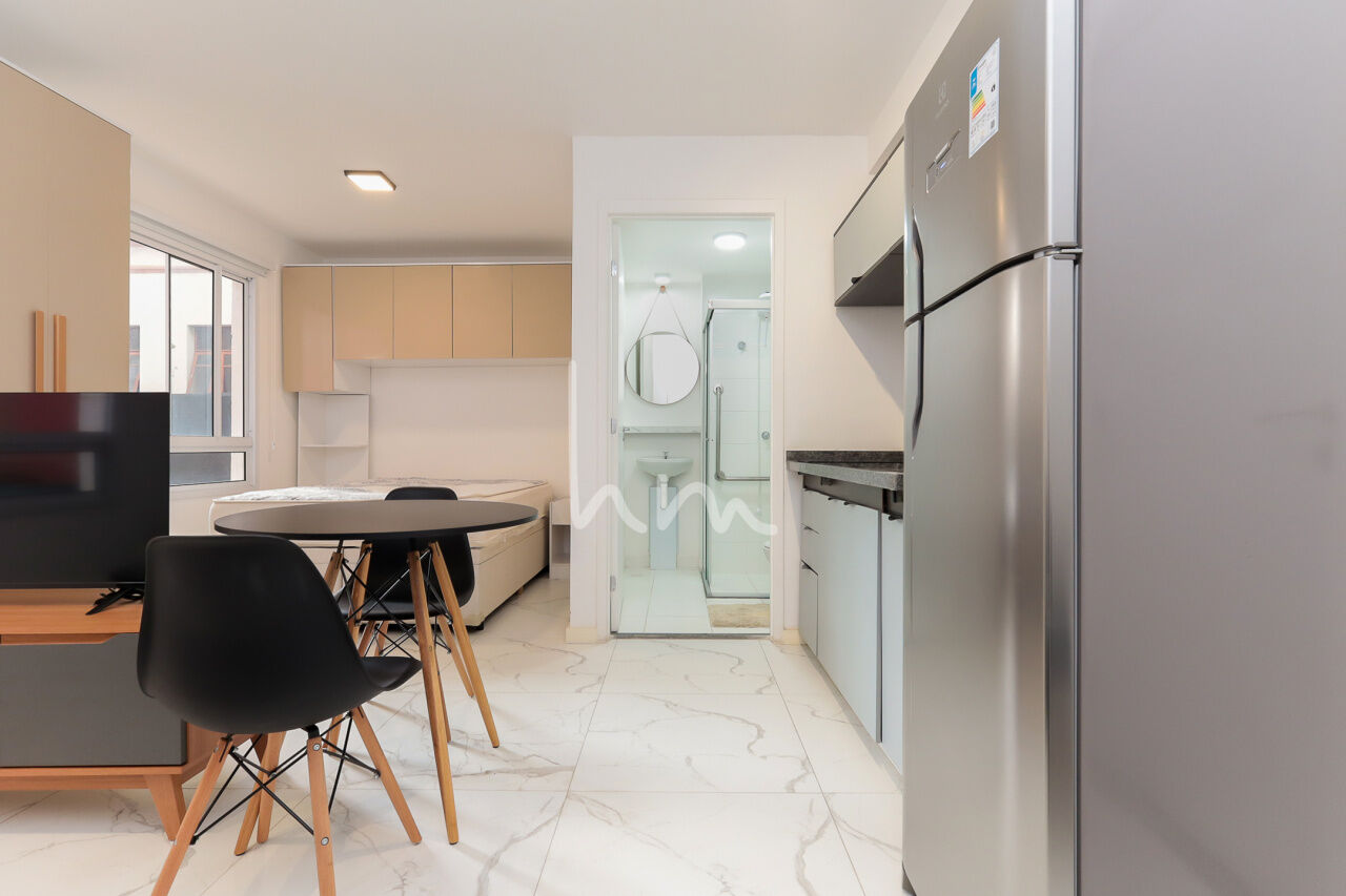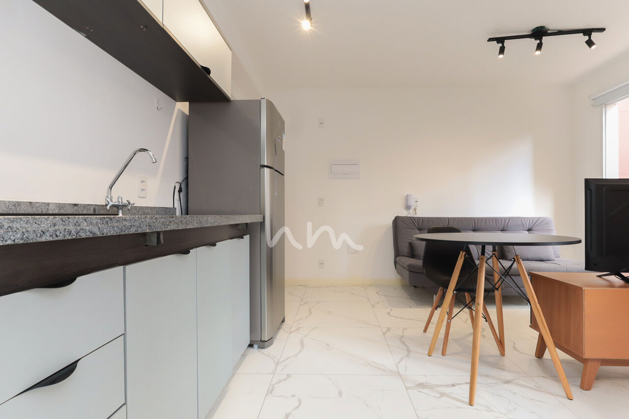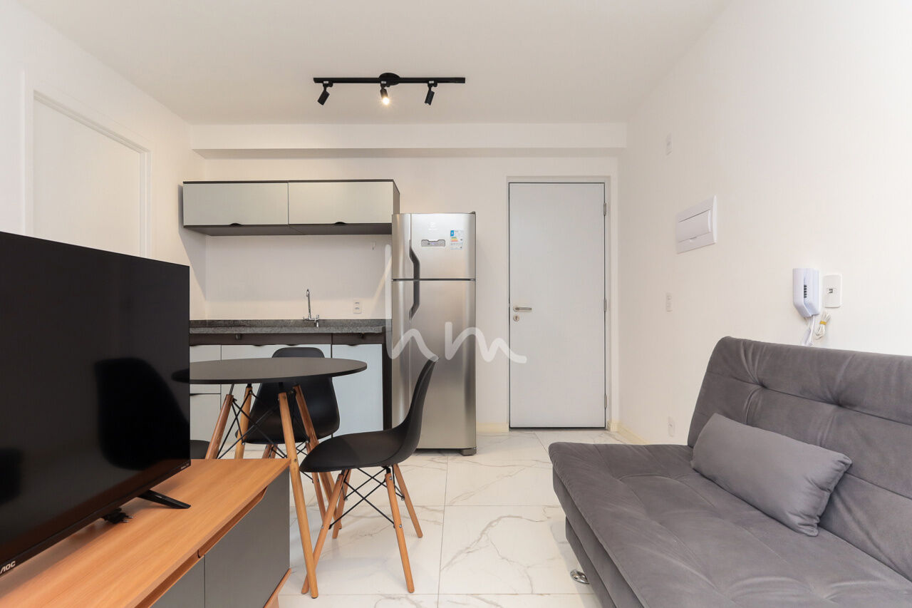 O apartamento é um Studio novo, totalmente mobiliado e muito bem conservado. A planta integra sala, dormitório e cozinha de maneira inteligente, otimizando o espaço e garantindo praticidade. A marcenaria é funcional, os móveis estão em excelente estado e os acabamentos seguem padrão contemporâneo.